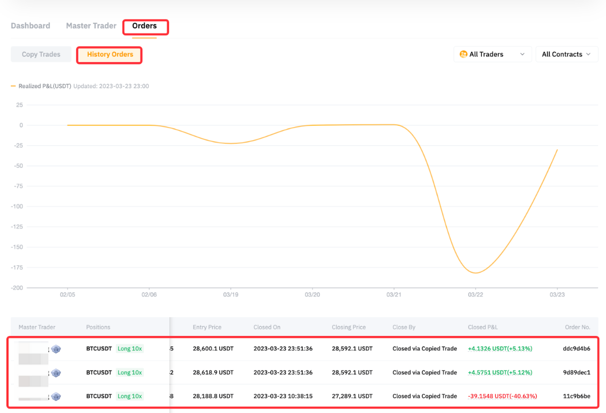 The entire position is now closed. Follower A can go to the History Orders page from his User Center (Follower) to view the closed P&L.