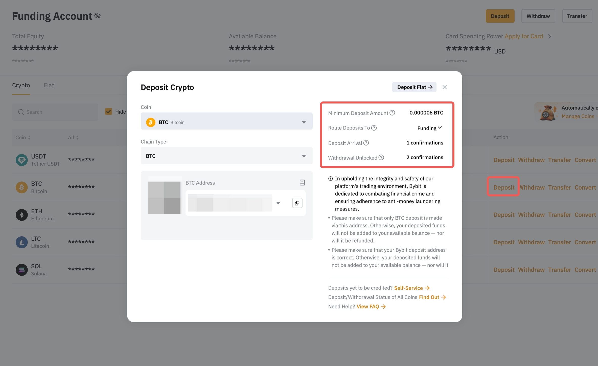 Bybit has specific requirements for the number of blockchain confirmations needed for various coins before the transfer amount can be credited to your Bybit Wallet.