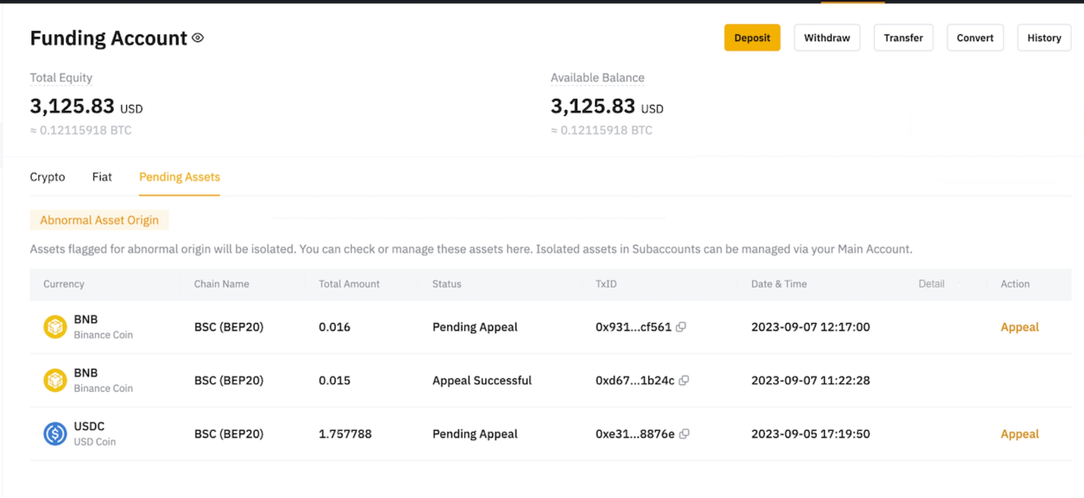 The appeal is successful, you can proceed to make a withdrawal on the Assets Page.