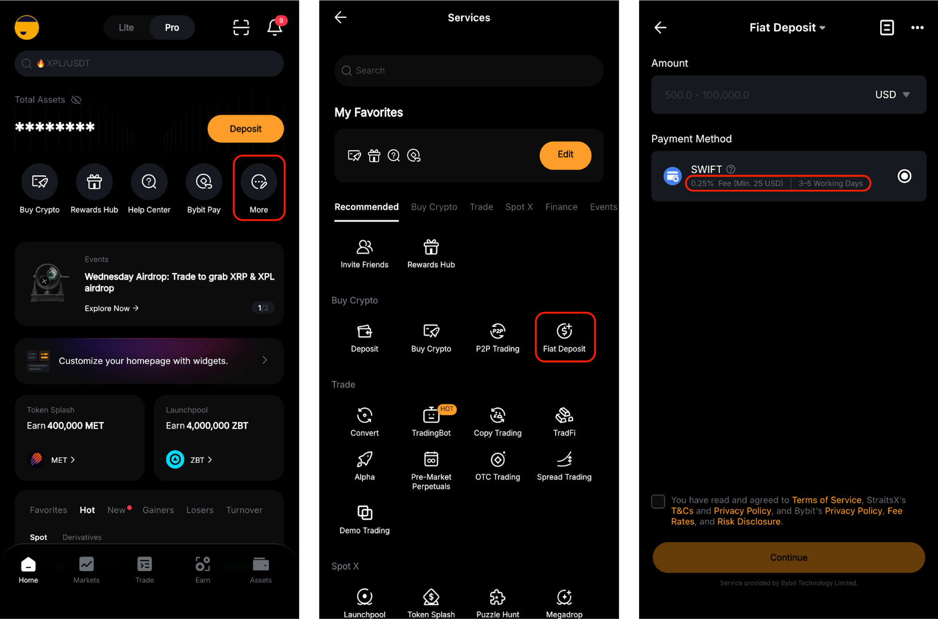 On the App, please go to the Homepage and tap More, then select Fiat Deposit. Next, tap on the fiat currency to view the associated fees for each available payment method.