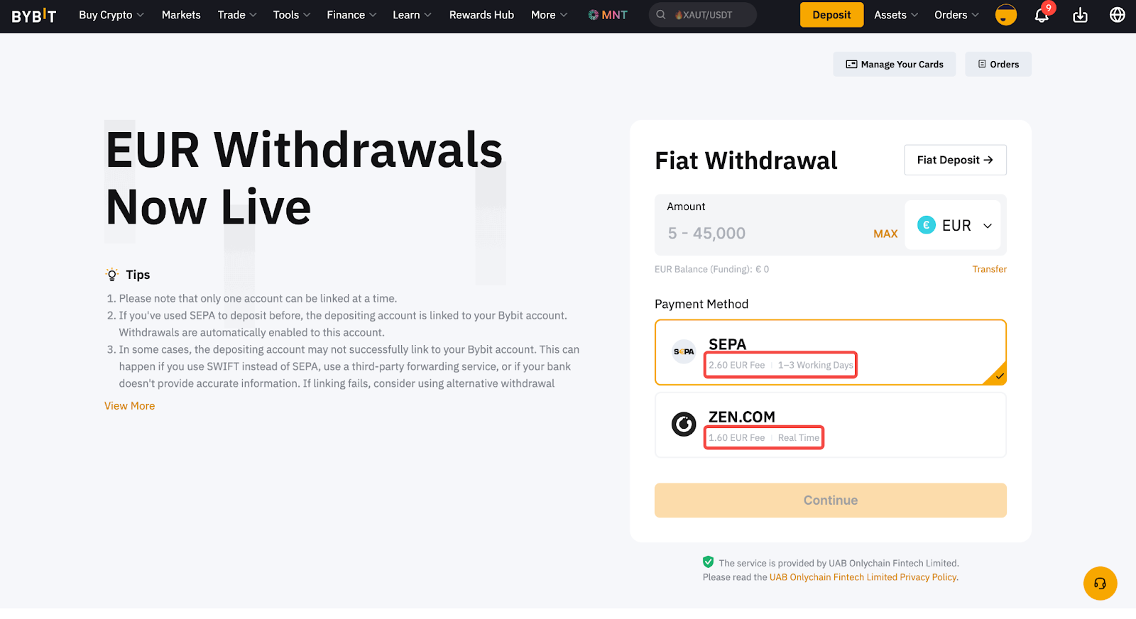 For P2P Trading, Bybit offers zero transaction fees for either the buyer or seller. However, traders may need to pay transaction fees to the payment provider based on the payment method selected.