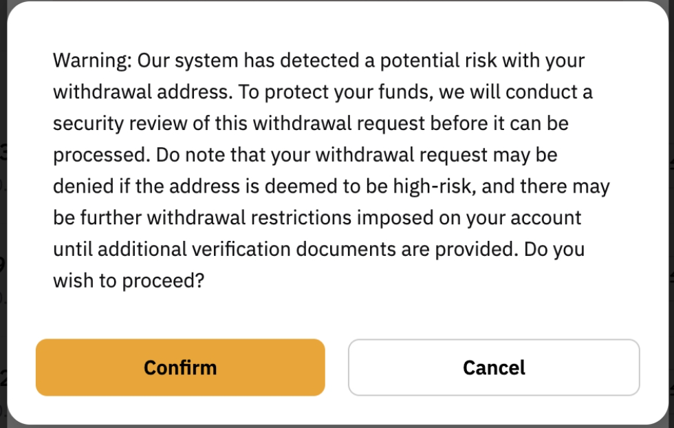 Why do I see a risk warning window when I submit my withdrawal?