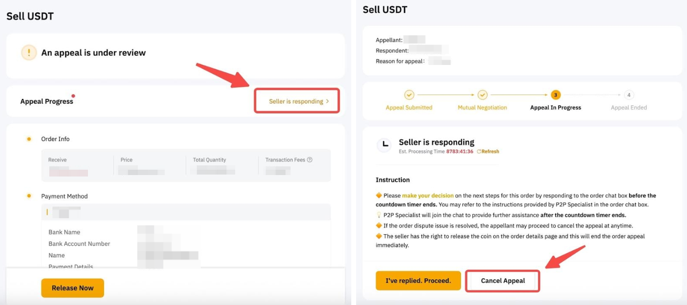 Fast-track appeal is only available to certain P2P appeals and P2P traders. P2P orders involved the following are not supported for Fast-track Appeals.