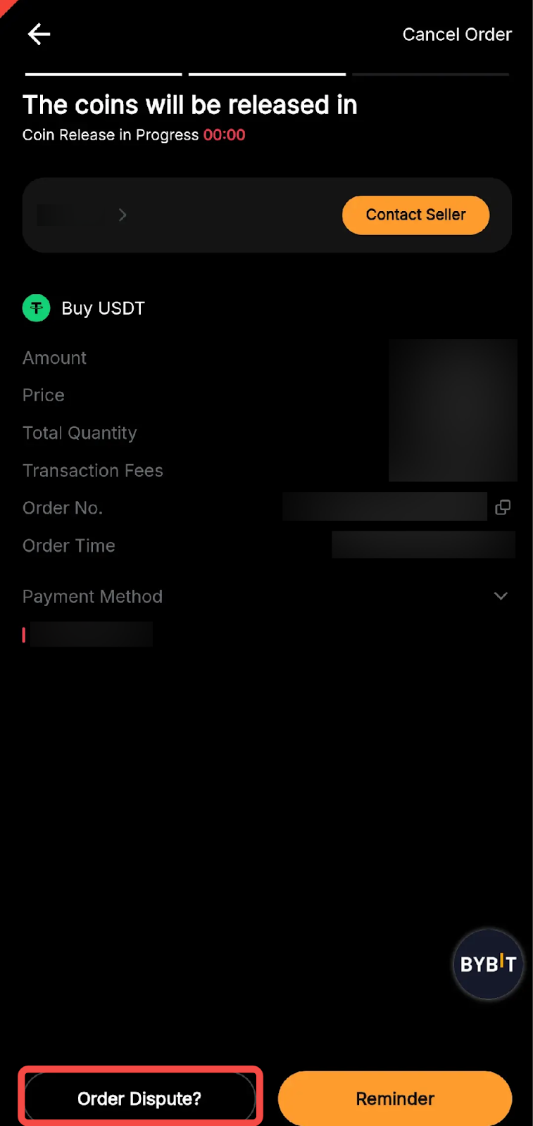— Failing to transfer the funds to the Seller within the set timer in your Bybit account will automatically cancel your order.