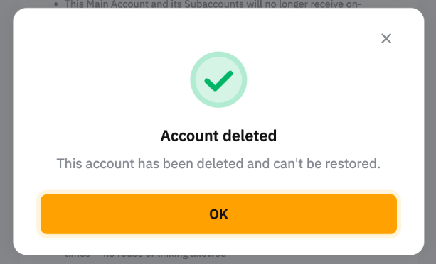 — Users need to meet certain criteria in order to delete the account. Please refer to FAQ — Account Deletion for more information.