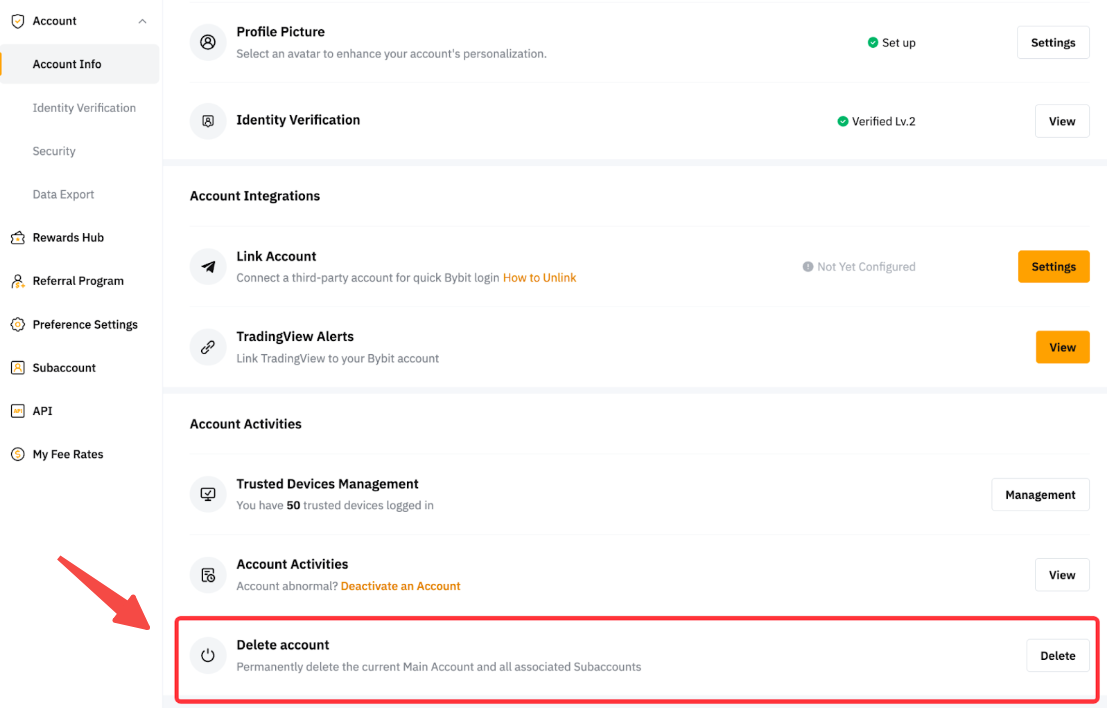 Bybit has launched a self-service account deletion feature, which allows users to delete their accounts on their own via the Account page.