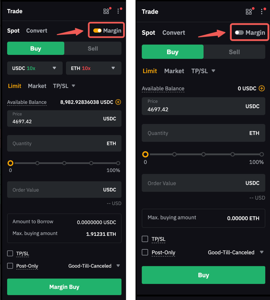Margin Modes: Spot Margin Trading is only available in Cross Margin or Portfolio Margin mode. Ensure you’re not in Isolated Mode, as it is unsupported for Margin Trading.
