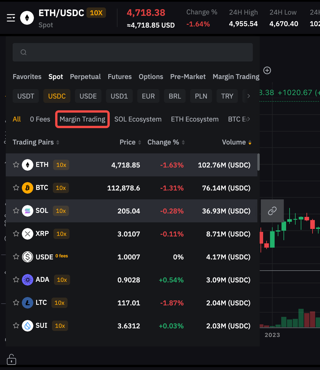 Alternatively, select a Spot pair that supports Margin trading under the list of trading pairs.