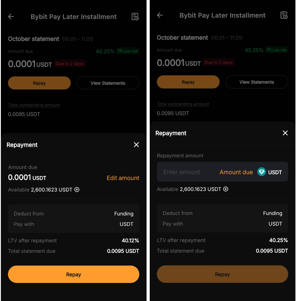 — For more details on how the collateral works, refer to FAQ — Pay Later on Bybit Pay.