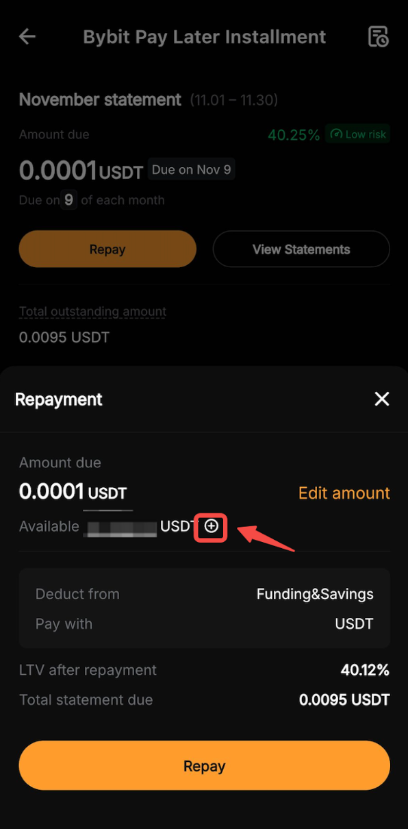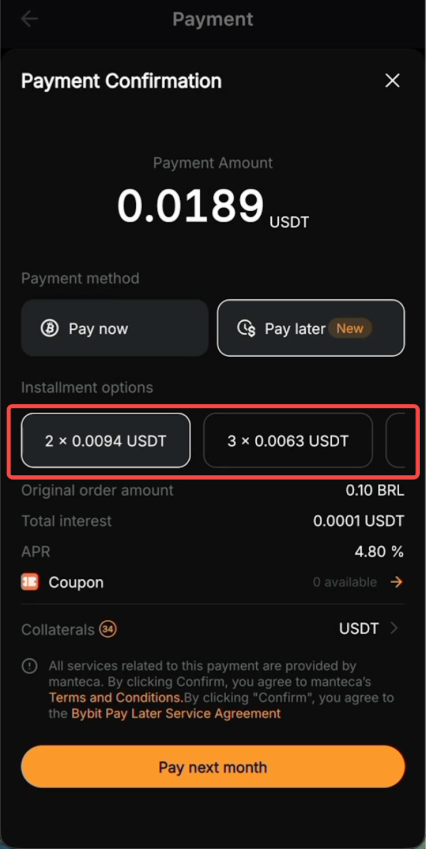 Step 4: Your installment plan details will be displayed. Tap the right arrow icon next to Bybit Pay Later for more information.
