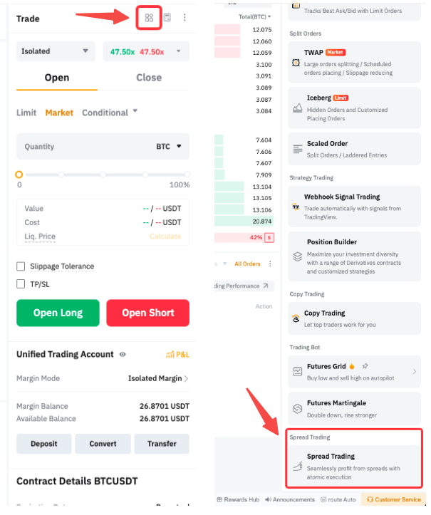 You can also find Spread Trading in the Tools tab on the right panel of the Spot/Futures trading page.