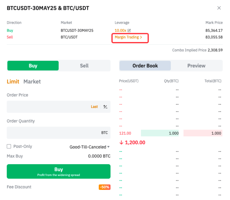— If Spot Trading is involved, leverage can only be set if Margin Trading is enabled. You can enable or disable Margin Trading from the Spot Trading order zone.