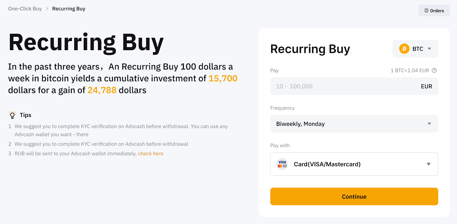 1. Russian and Belarus users are only able to purchase Recurring Buy plans in RUB.
