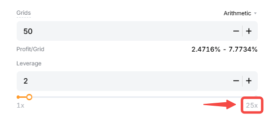 Enter the number of grids. The higher the number of grids, the smaller the price intervals. This means that in a volatile market, your orders may be filled more frequently, but your profits would be lower, due to multiple trading fees.