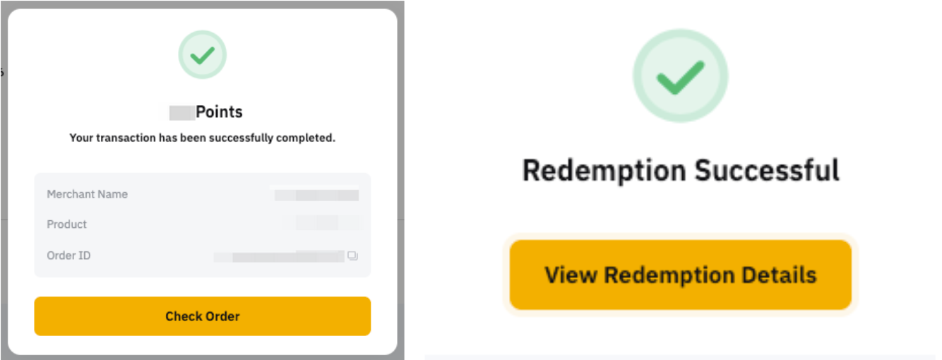Upon successful redemption, tap on Check Order and View Redemption Order to be redirected to Rewards Hub.