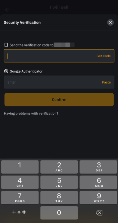 Step 2: Enter the amount of coins you want to sell, or the amount of fiat you want to receive by tapping the Switch button.