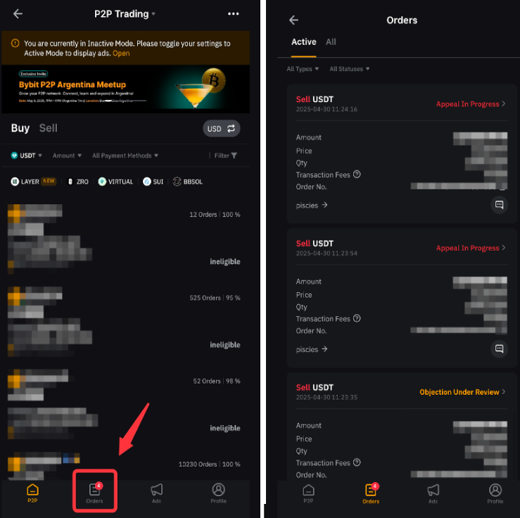 You can view the Order History by going to Orders from the P2P Trading page.