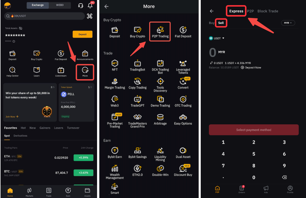 Step 1: On the homepage, please click on More → P2P Trading, and at the top of the P2P Trading page, select the P2P Express tab.