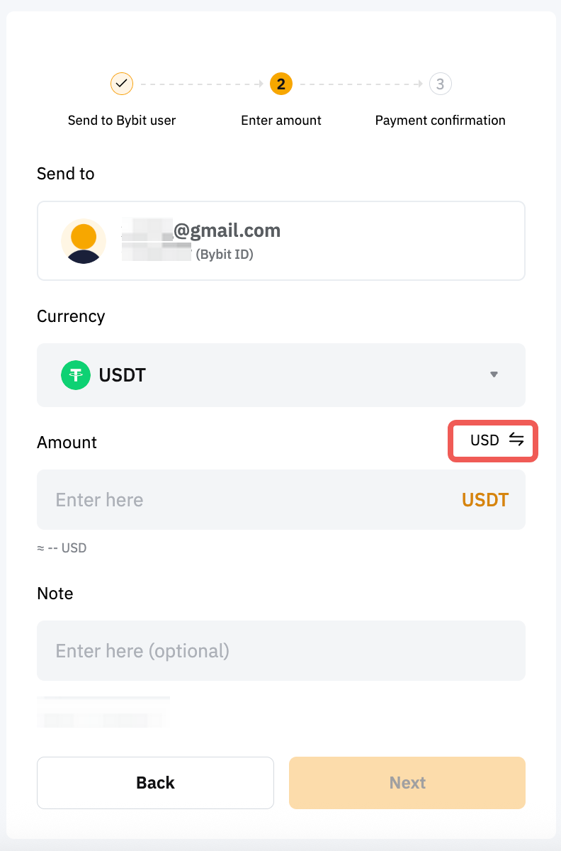 Step 3: Enter the amount of coins you want to send, and enter a Note to indicate the payment purposes (optional).