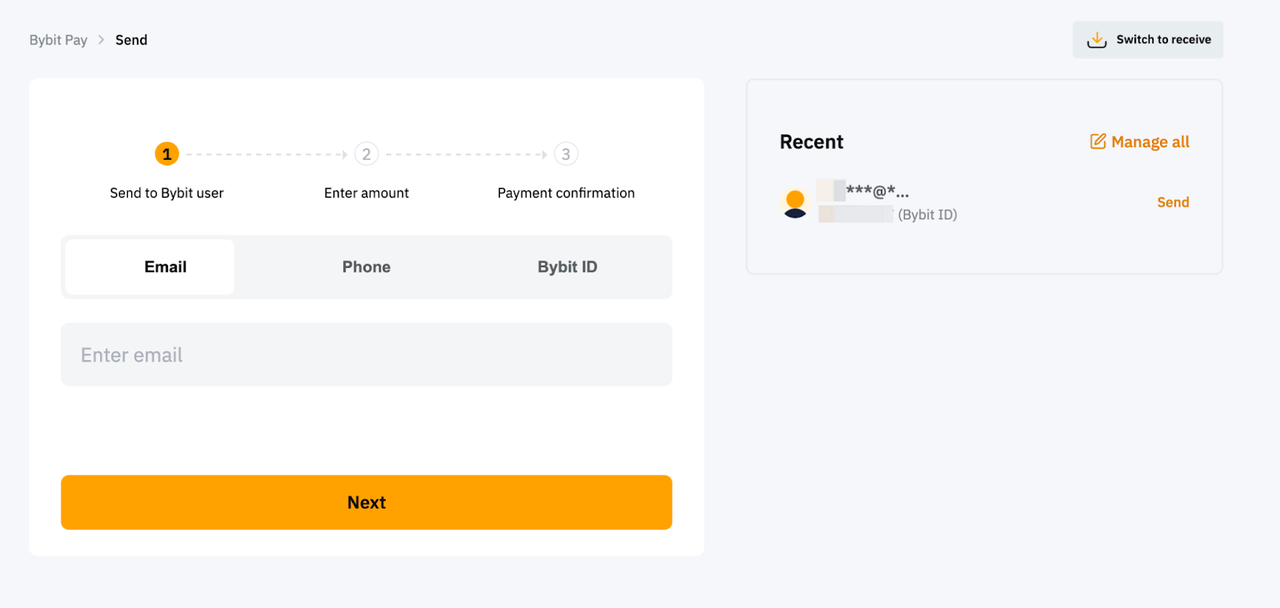 Here’s a step-by-step guide on how to send a payment using Bybit Pay.