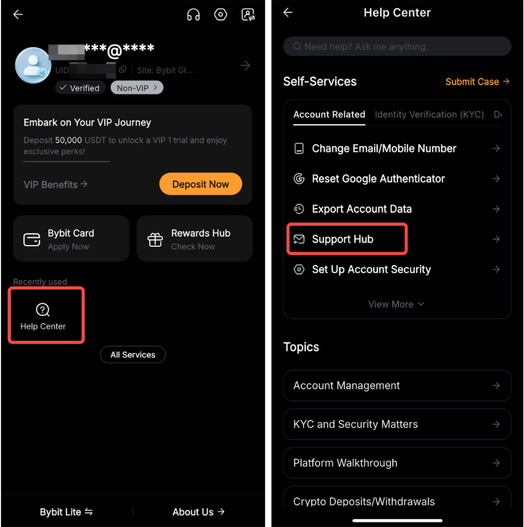 Step 1: Go to your Profile → Help Center and click on Submit Case.