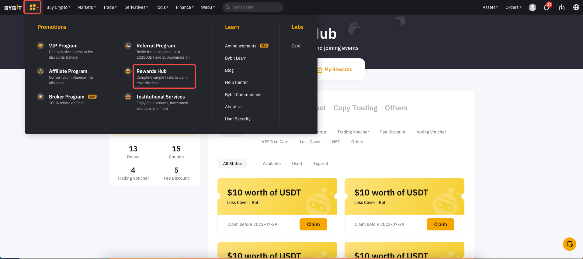 Note: The applicability of the Loss Cover Voucher may vary depending on the type of trading bot. Please check the reward details for specifics.