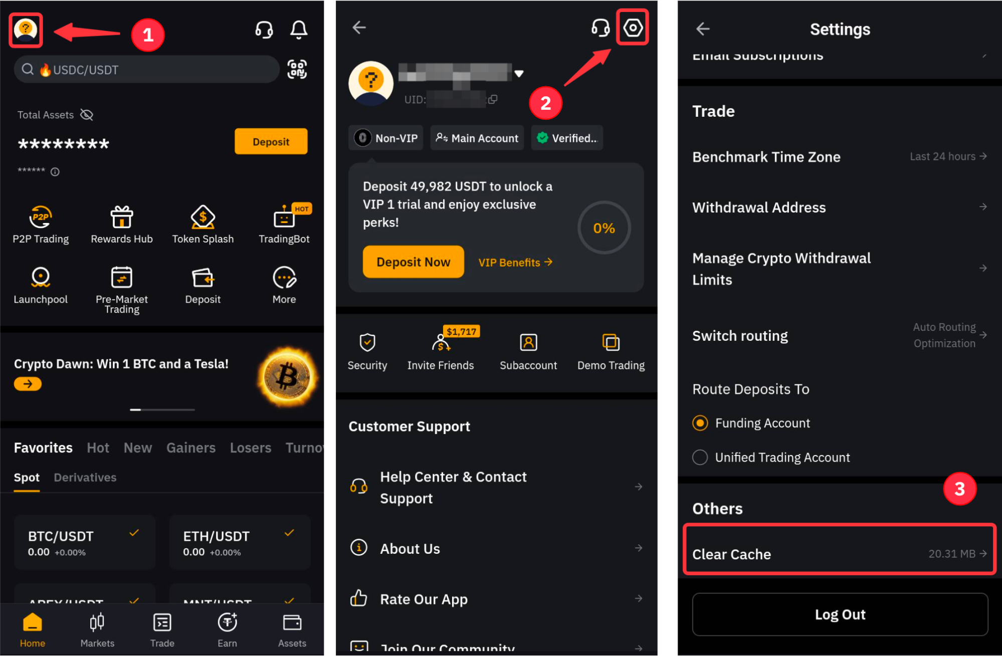 — Go to the profile icon at the top left corner of the homepage. Click on Settings and then select Clear Cache to clear your phone’s cache.